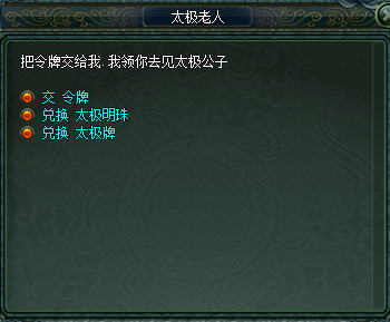 太极剑门副本里找太极老人兑换: